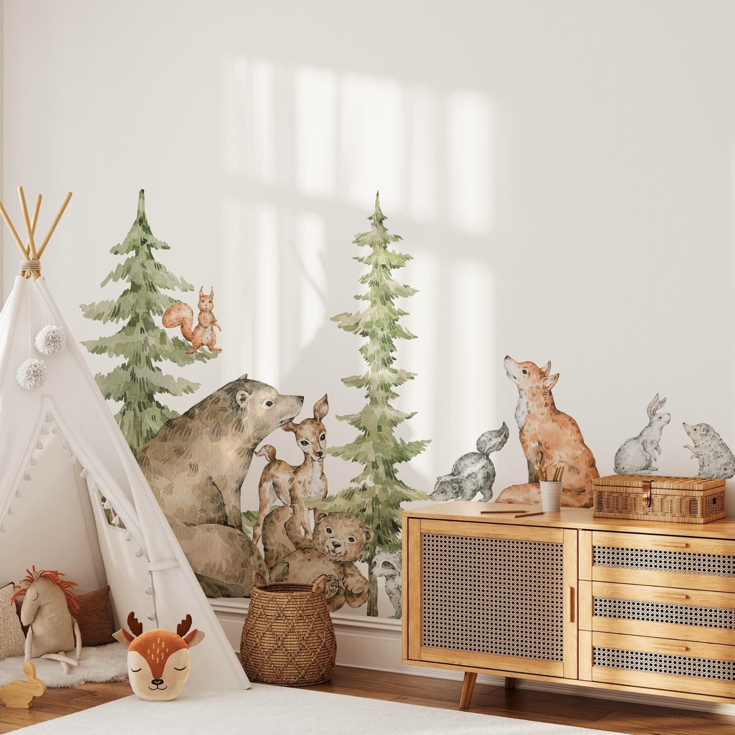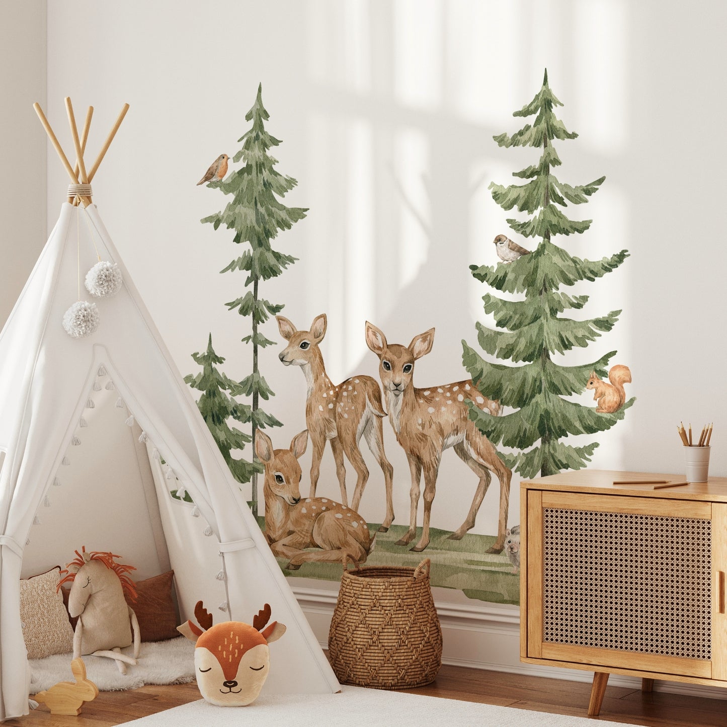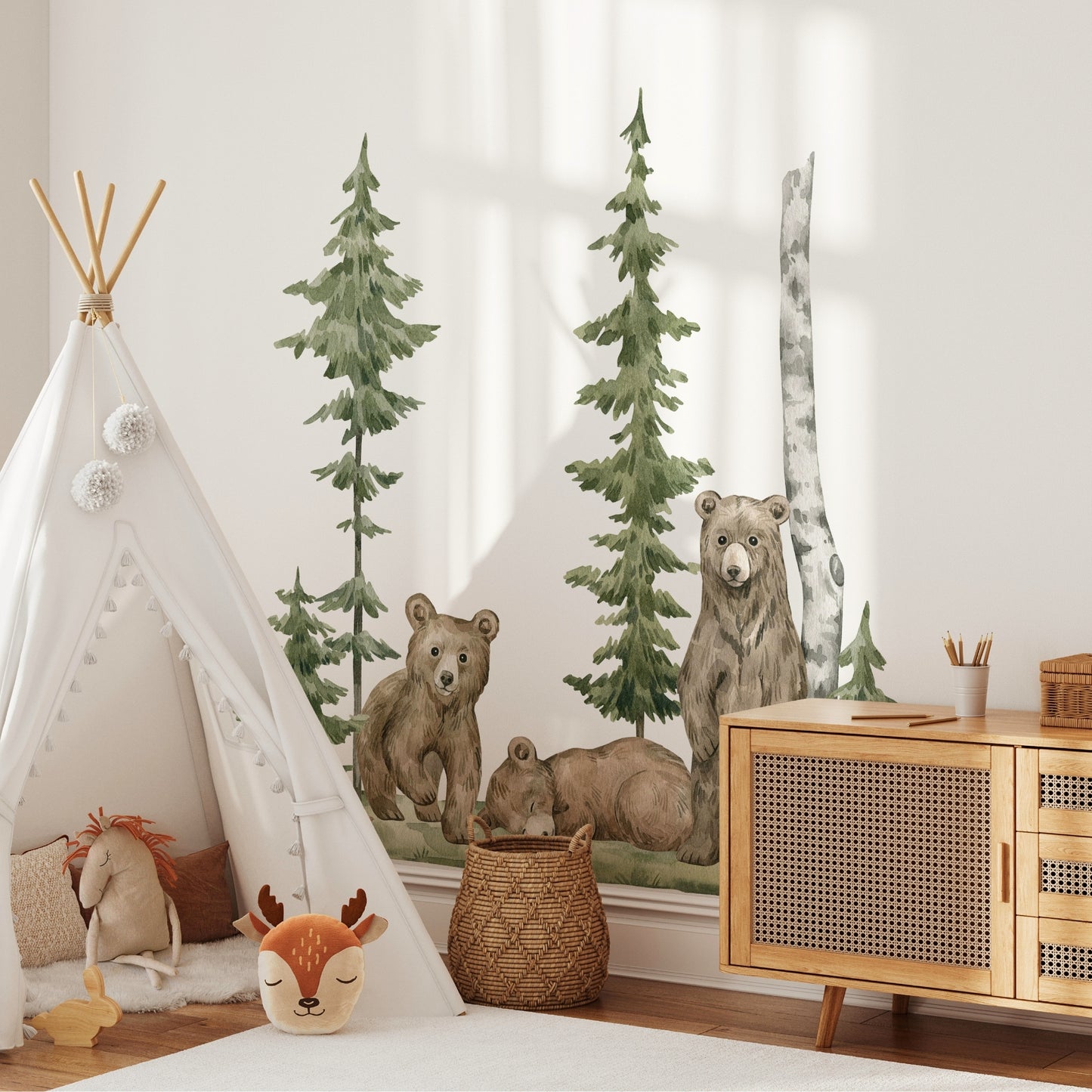 Bring the calm of the forest indoors with our watercolor woodland pine tree wall decal — a gentle, nature-inspired touch perfect for nurseries, playrooms, or cozy corners.