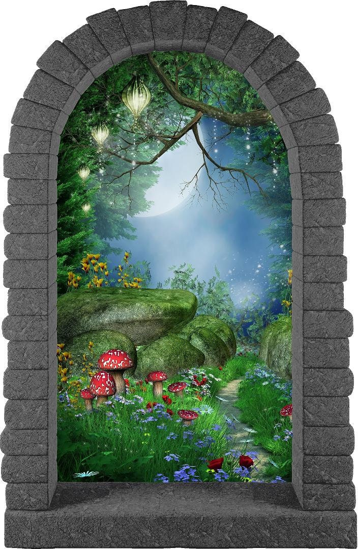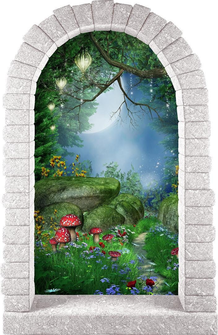 Enter the magical world with our fantasy/fairy tale inspired "Enchanted Lantern Forest" Rounded Stone Castle Window Wall Decal. Create the picture perfect princess inspired whimsical wonderland themed room. We make our wall decals easy to apply, eco-sol safe and removable. Just peel and stick this fabric to your little one's bedroom, playroom or nursery walls. Perfect for any fantasy/princess themed occasion: Kids birthday party decorations, bridal shower decorations, themed kids bedrooms, crafts, etc.