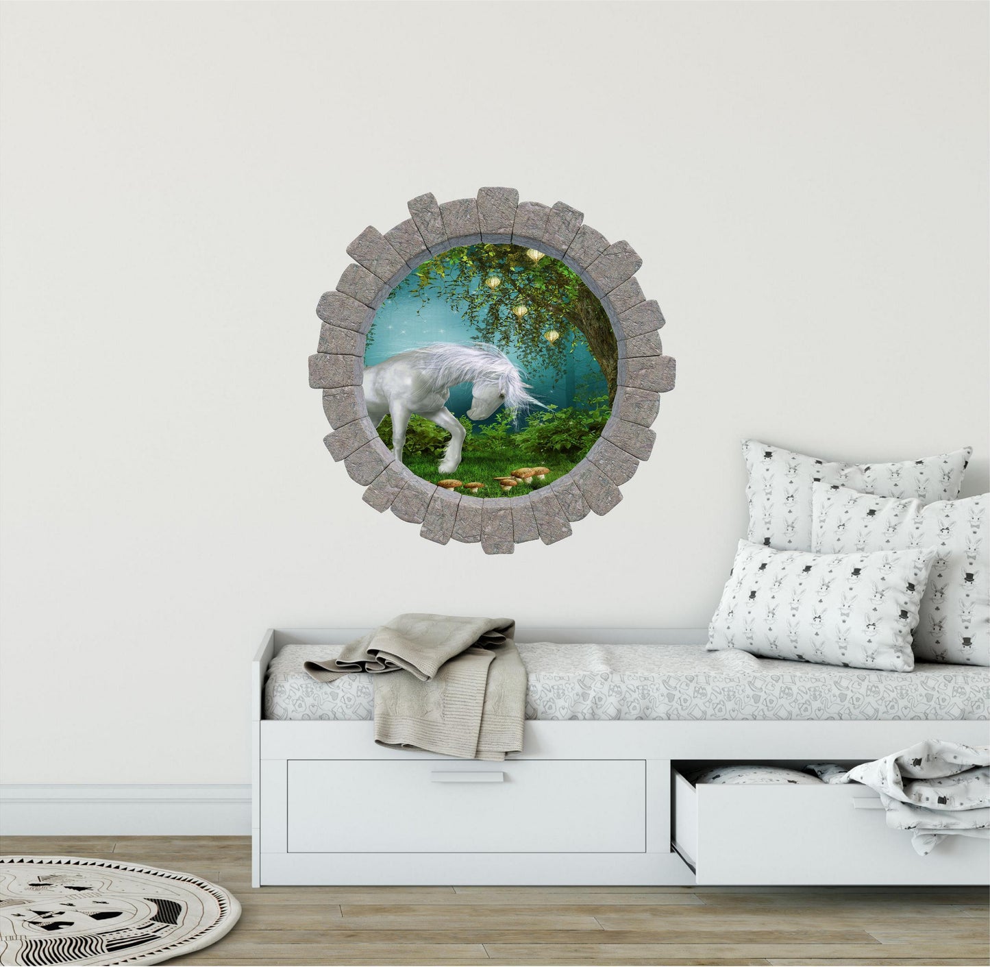 Stone Hole Wall Decal Unicorn In Enchanted Forest