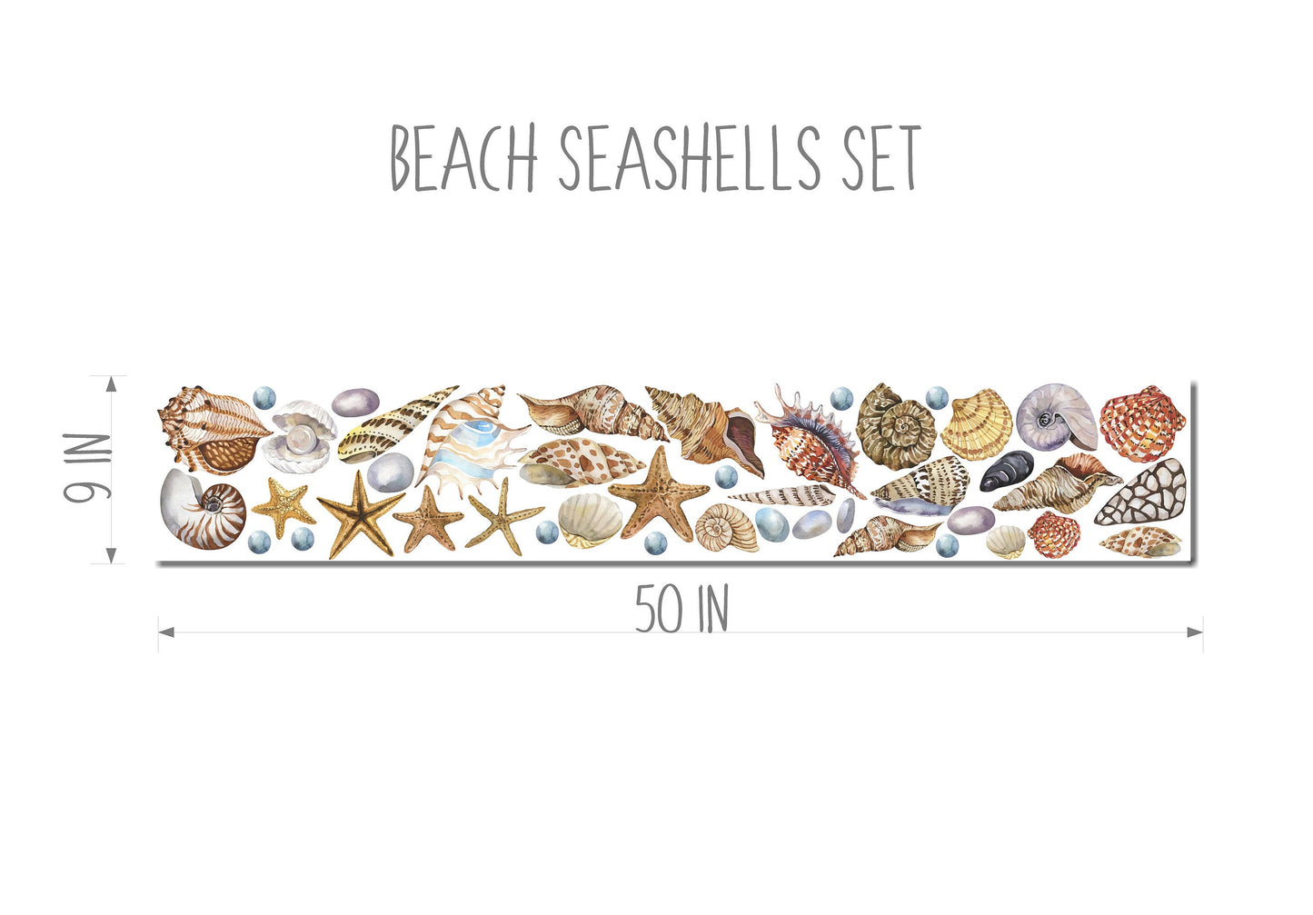 • Beach Seashells & Starfish Set decal set comes on one sheet, 44 pieces total