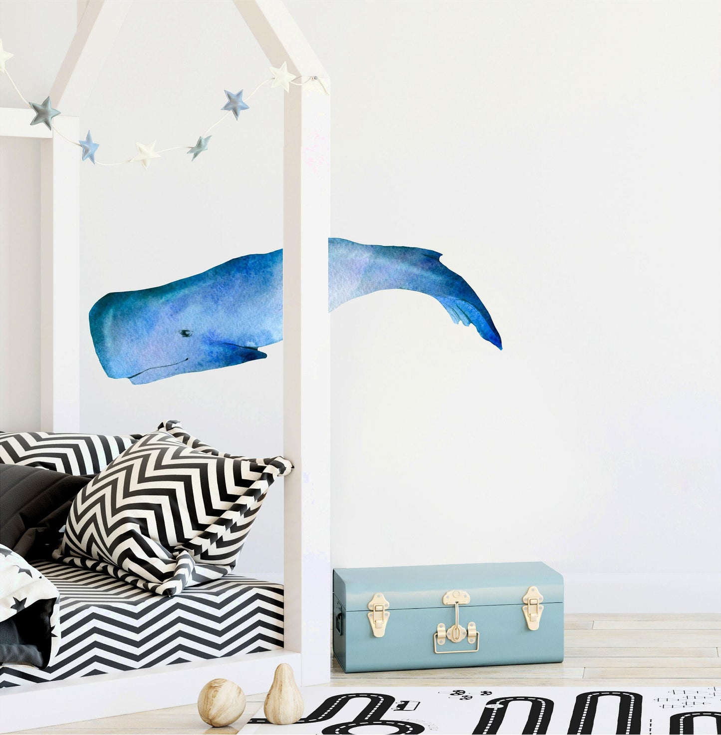Get this adorable Watercolor Blue Sperm Whale Wall Decal for your little ones nursery room. These watercolor sea animals make the perfect addition to kids rooms, playrooms, bedrooms and more. Our fabric stickers are easy to apply and easily removable. Pair it with any of our other ocean animals for a full wall of ocean friends!