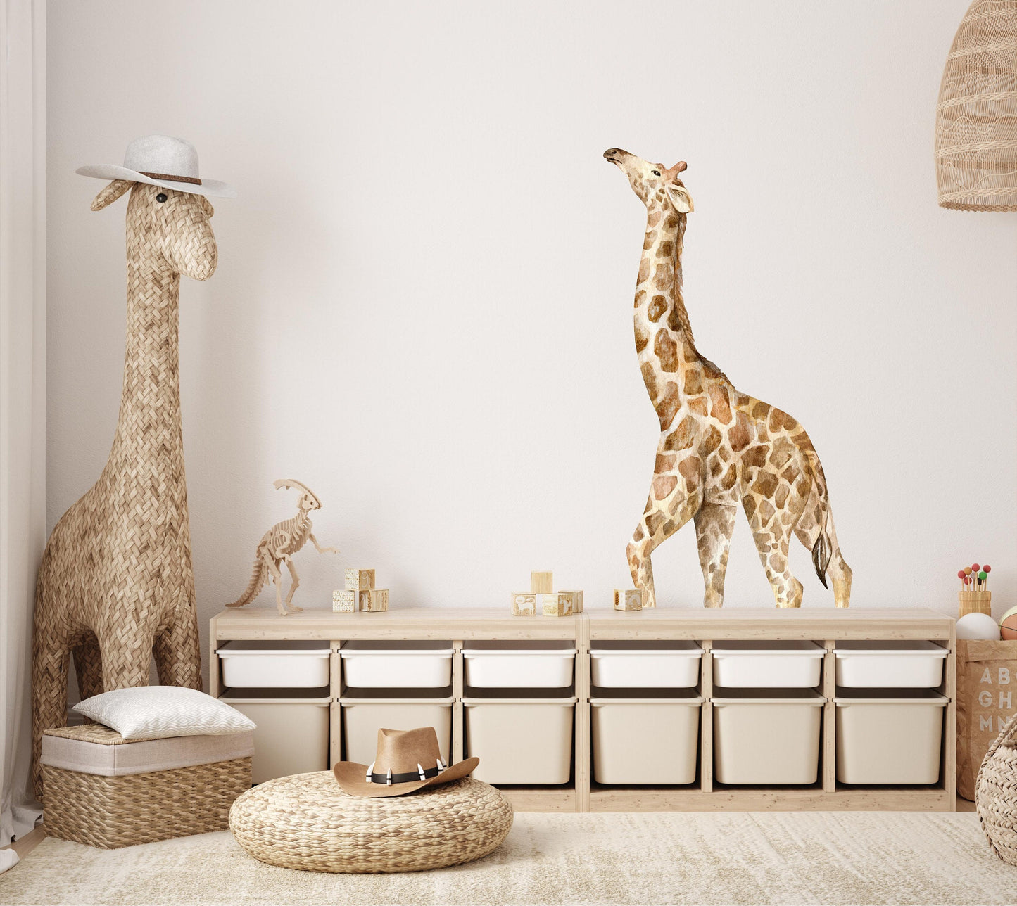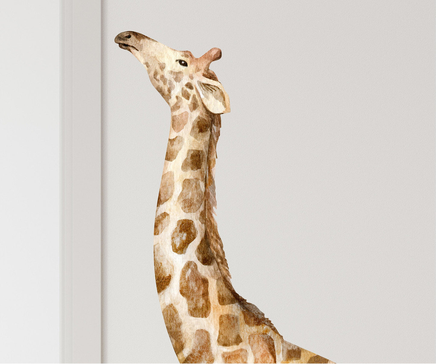 This adorable Giraffe repositionable fabric wall stickers will transform any room into a jungle safari. Illustrate your nursery or playroom with this sweet watercolor safari animal set today!