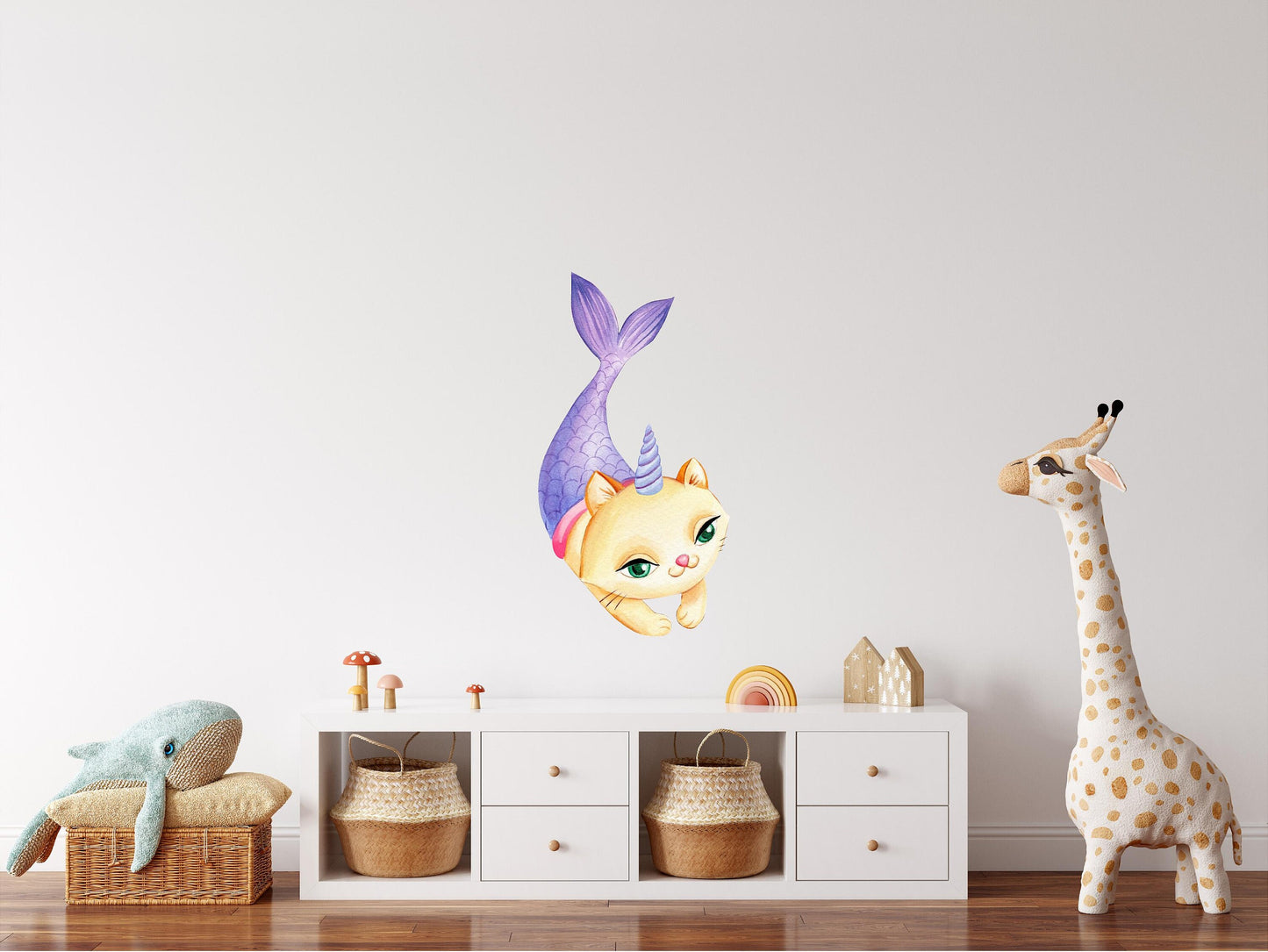 Purrmaid Cat Mermaid Unicorn 2 Wall Decal | Ocean Collection