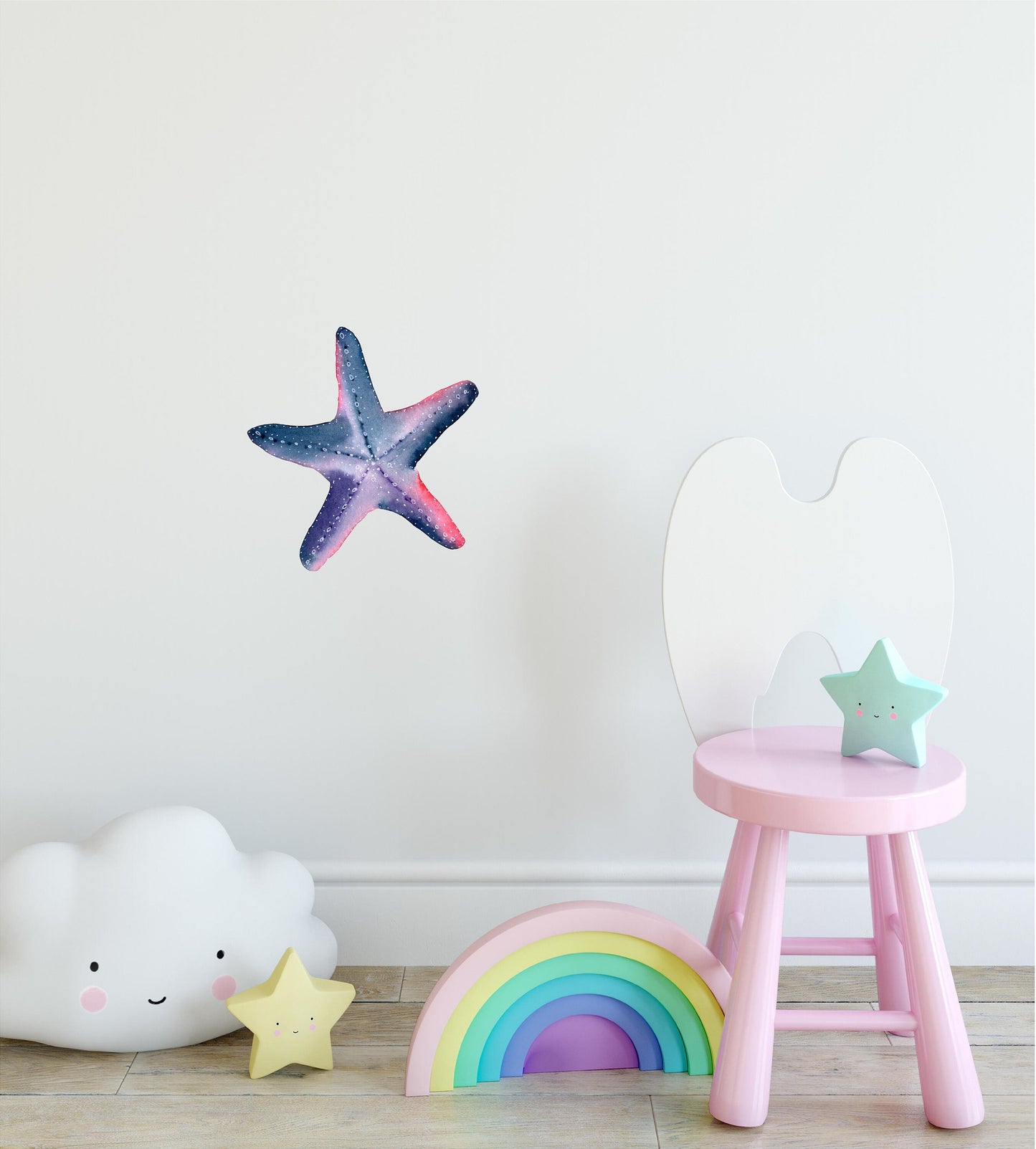 Get this adorable Watercolor Starfish #3 Wall Decal for your little girls nursery, bedroom or playroom walls. This cute sea star is watercolor style, featuring vibrant blue, purple and pink colors. Our fabric wall stickers are easy to apply and easily removable & re-positionable. Pair this decal with one of our other under the sea themed animals for the ultimate ocean themed bedroom!